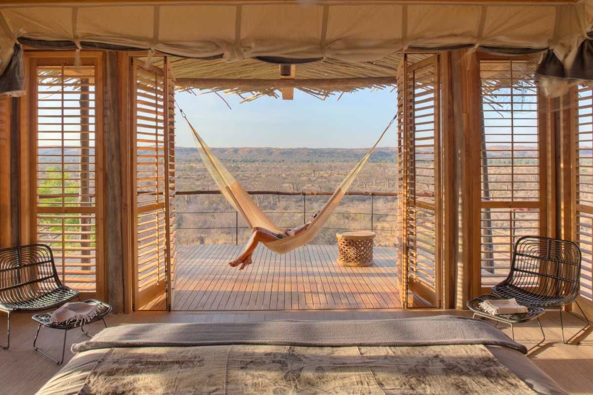 Being a super exclusive camp, it only has 16 tents, all fully equipped, with a terrace to see the views, wood and white finishes, a bathtub and everything you need to relax next to one of the best sunsets in Africa.