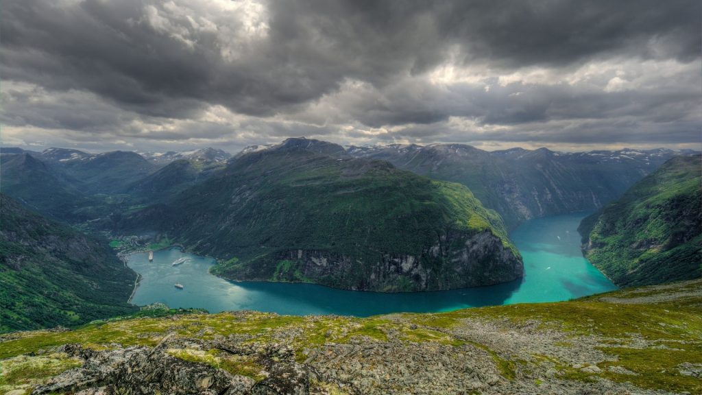 The Seven Sisters Waterfall and many others pour down steep mountain slopes into the brilliant blue waters of the Geirangerfjord (or Geirangerfjord). This fjord, the most famous in all of Norway, is protected by Unesco as a World Heritage Site
