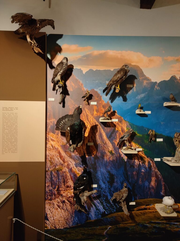 During our visit there was one dedicated to hunting, in which high-quality photographs were mixed with weapons from different periods and some stuffed animals.