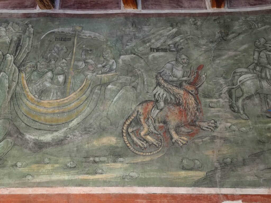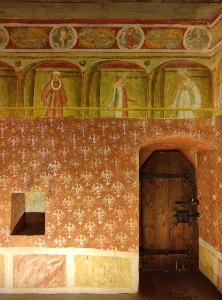 The building at the end of the courtyard is called the Summer House, the one built by the Vintler brothers and in which you can see some of the most striking frescoes of the castle, those related to literary motifs. On the walls of that palace you can see King Arthur sitting at the famous round table. Or Tristan, Iseult’s lover, fighting a dragon.