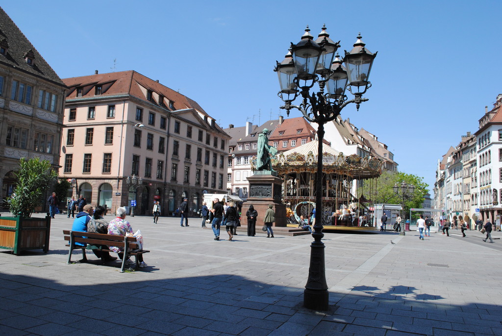 On the cathedral square, the Renaissance Kammerzell house has become one of the city’s icons thanks to its 75 wooden windows that give it an air of a fairytale house. The rue Merciére, just in front of the cathedral’s façade, is the place where tourists take the opportunity to take the typical souvenir photo. At the end of this street is the Plaza de Gutenberg, which together with Plaza de Kléber make up the two main arenas in the city and where all kinds of parties, parades, dances, etc. are held.