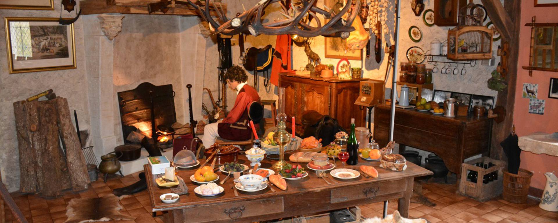 But there are not only traditional museum-style objects in the 25 rooms of the Musée du Veneur , but also recreations of entire spaces : a stall workshop, a blacksmith shop, and even the house of the piqueux – the keeper of the hunting dogs. who is represented with his son in front of the fire in the fireplace.