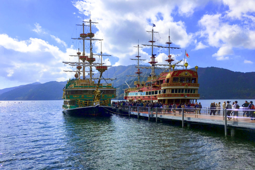 Another attraction is Lake Ashi . Sitting in a crater, along its rim are numerous fountains, temples, and ryokans (traditional lodgings). Around it you can practice hiking with routes of various levels of difficulty. What is surprising in this environment, because they are incongruous, are some pirate galleons –more typical of the Caribbean seas– crossing the lake from end to end. It is a popular cruise line created in the 1950s.