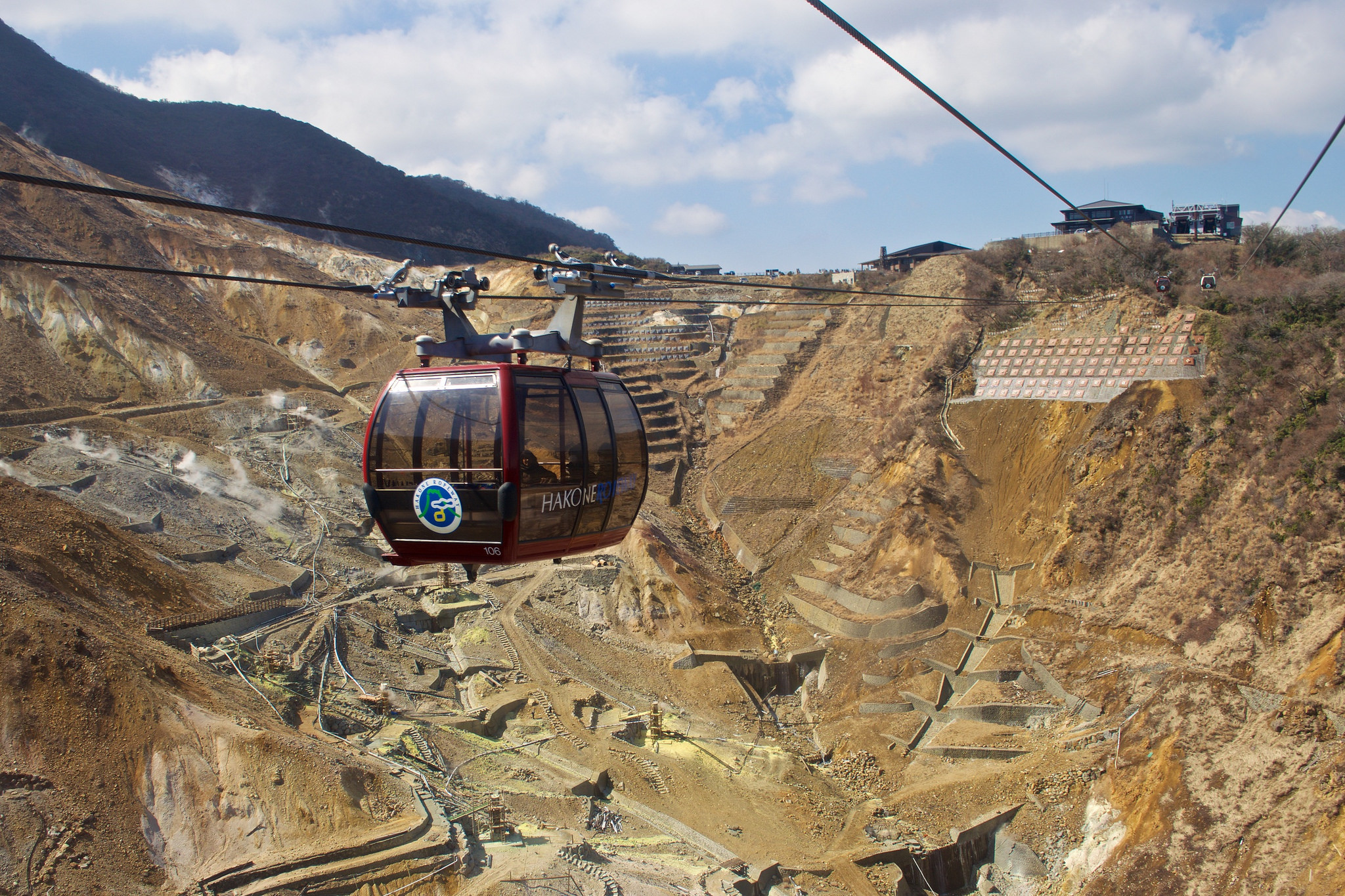 The best views over the valley are achieved aboard the cable car that connects the Sōunzan and Tōgendai stations, a journey of just 1.5 kilometers that overcomes a drop of 280 meters. From its height you can see an entire area of barren and rocky land dotted with concentrations of sulfur.