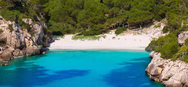 2. Cala Macarelleta, Menorca: The Balearic Islands are archipelagos off the east coast of Spain, in the Mediterranean. The southern coast of these islands has several of the best beaches in the Basque Country: white sand coves amidst pine trees and rocks that are part of the landscape in the water. Cala Macarella and Macarelleta may be the perfect example of this panorama; Located less than 15 kilometers from Ciutadella, in the middle of the road, between walls and fields, you will find incredible beaches in the background. Here, in addition to resting, you can snorkel.