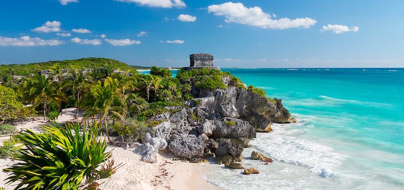 9. Tulum, Mexico: For many it is the most beautiful beach in the Yucatan peninsula due to the landscape given by the Mayan ruins of the city of Tulum and the proximity to the Caribbean Barrier Reef. You can bathe a few meters from El Castillo and the temple of the God of the Wind that are elevated on a rocky hill; It feels like you could go back in time. A few meters offshore is a great underwater paradise of Central America: more than 1,500 kilometers long with various corals; a delight for lovers of underwater exploration.